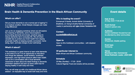 During Dementia Action week | 19 - 25 May 2025 we are celebrating the work of applied dementia researchers from across England. Find and event near you.