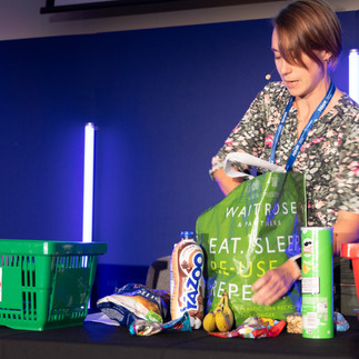 Professor Janis Baird introduced the next act presented by Dr Sarah Muir following the APPROVE study which looked at how supermarket marketing could effect the shopping choices of women.